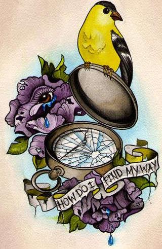 Олд скул и нью скул тату птицы, ласточки, стрижи, чайки, зяблики, синички, лазоревки в ярких цветах, с письмами, звёздами, с надписями и цветком - символы добрых вестей, хорошего, бгагополучного дела.