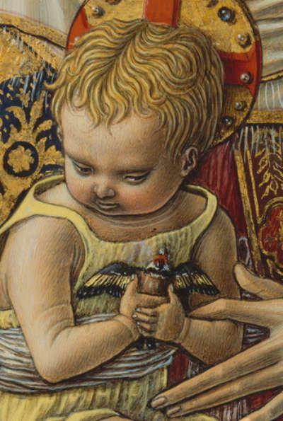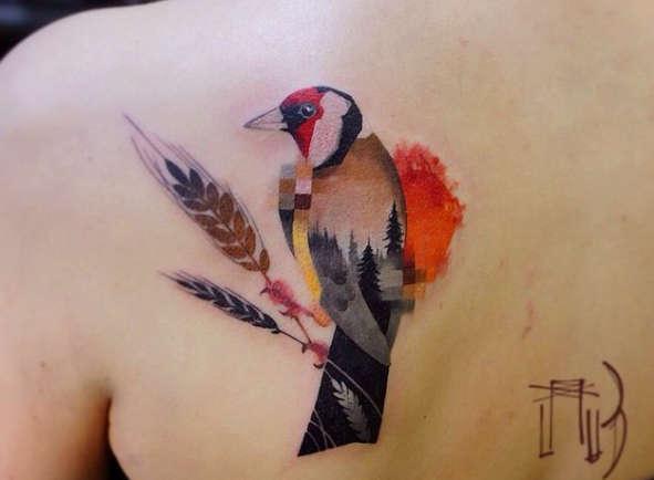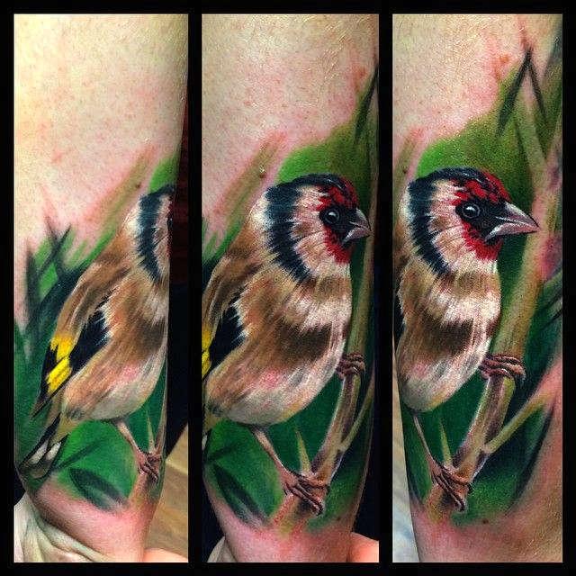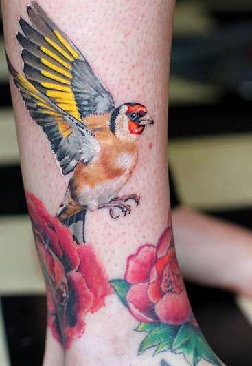 Татуировки птиц для женщин щиглики — стойкость и упорство духовного начала, символ души, летнего солнцестояния, славянская зеленушка вид черноголового щегла. Щегол, символ Страстей Христовых, происходит из легенды, согласно которой во время распятия Христа эта птица, пролетая над терновым венцом Спасителя, вырвала из него окровавленный шип, отчего все щеглы стали помечены красным пятном. По другой легенде щегол сел на голову Христа во время крестного пути и вытащил терновую иглу из брови. Изображают в тату эскизах щегла и зеленушку с растением чертополох, нередко вместе с мухой, олицетворяющей грех и болезни, от которых Иисус спас человечество, их изображение на средневековых детстких портретах было в качестве оберега от детстких болезней.
