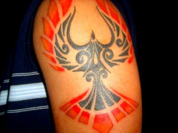 Птица в племенном стиле Новой Зеландии изображается на плечах в надежде, что руки мужчины приобретут силу крыла птицы.