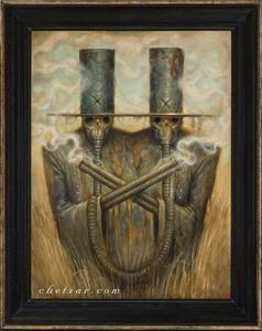 Например, картина «Двойной сглаз» («Double Whammy») – трубы символизируют индустриализацию, которая повлекла за собой засорение моего мозга. Треугольник – это духовный символ, смысл которого я пока не могу раскрыть – это личное.
