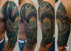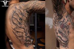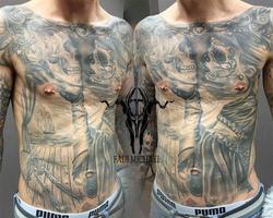 Не так часто, как в прошлом году, планирую посетить самые лучшие тату мероприятия. В настоящее время я нахожусь в Женеве, Швейцарии и только недавно мы с женой превратили студию в художественную галерею… Я очень избирателен при выборе тату проектов и веду запись всего на месяц (шесть недель) вперед.