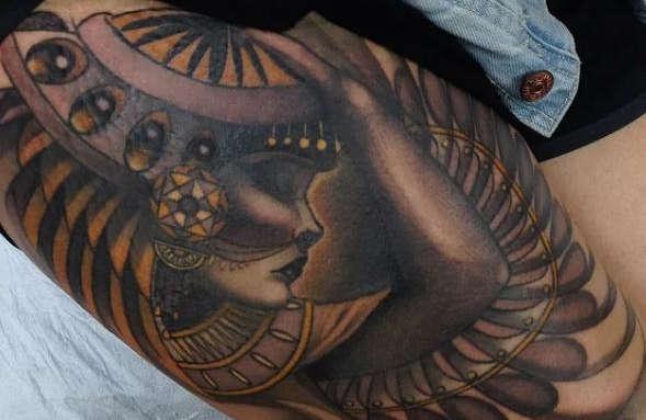 Исида самый сильный и чувственный магический символ среди египетских богов, она знает тайное имя бога Солнца Ра, и, поэтому, наиболее желанный дизайн татуировки на египетскую тему.