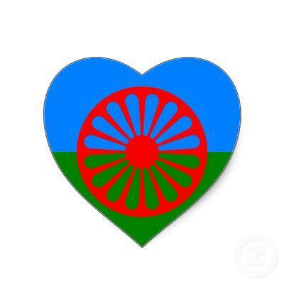 Символ «Колесо» был принят в 1971 году на первом Всемирном цыганском конгрессе в качестве официального символа рома ( "цыган"), и оно напоминает индийскую чакру в память индийского происхождения. Оно призвано символизировать колесо Варды, страны Западных Небес Индии, где отзвуки барабана Дхармы стали изначальными звуками Небесных Барабанов, колесо Фургона имеет 16 спиц, символизирует дорогу, вечное движение, кочевой образ жизни, солярный символ, "Дети Солнца", душу цыгана. Зелёное поле интерпретируется как область материального, практического, синее поле — как область духовного, а колесо-чакра — как жизнь цыгана, он не должен забывать ни о земных делах, ни о душе. Красный цвет колеса — цвет крови, пролитой цыганами в борьбе с фашизмом во время Второй Мировой Войны, а также крови жертв геноцида, крови, о которой цыган никогда не должен забывать. В старинной цыганской песне «Кай ёнэ» поётся: Где они, мои года золотые, мои слова? Где они, куда ушли? Заведём мотор и поедем...и пусть Бог даст вам доброй удачи! «Тэ дэл о Дэвэл э бахт лачи!»