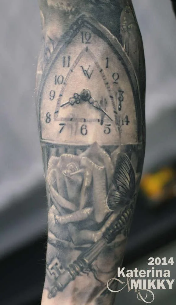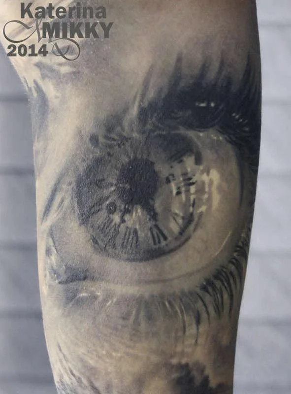 Тату ч/б глаз Время