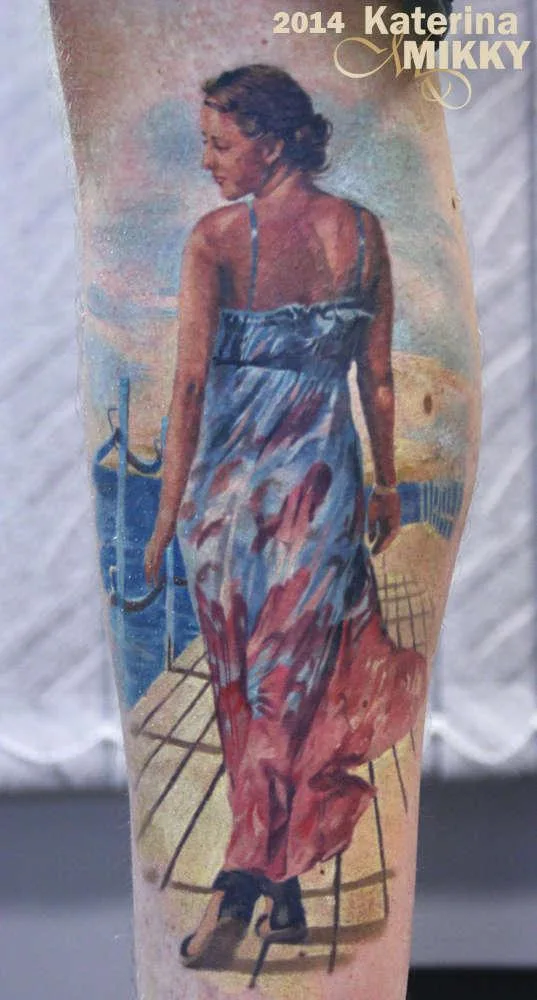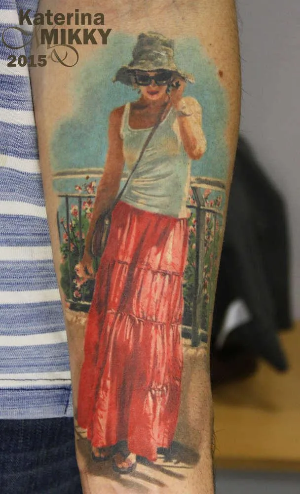Тату портрет девушки на отдыхе