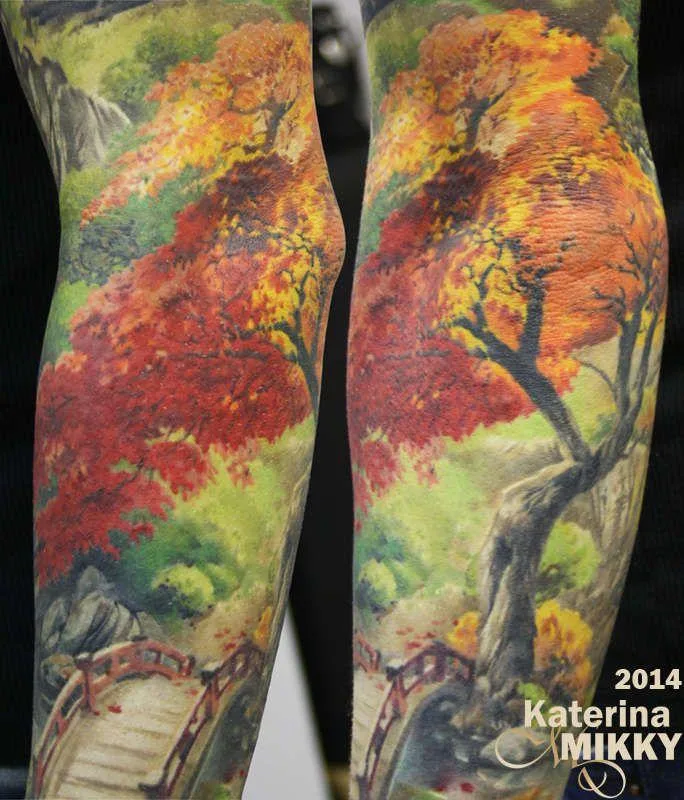 Тату осенний мостик