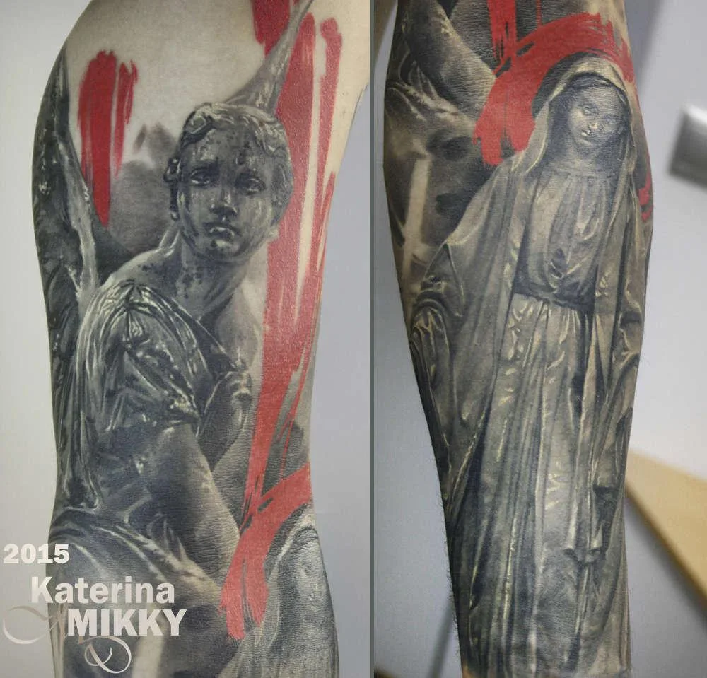 Тату религиозные мадонна и ангел