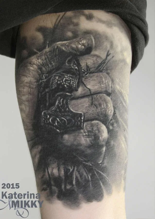 Тату Молот Тора в кулаке