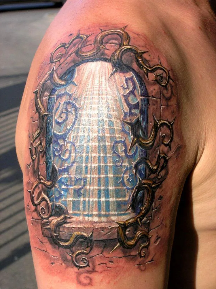 Тату лестница в небо на плече