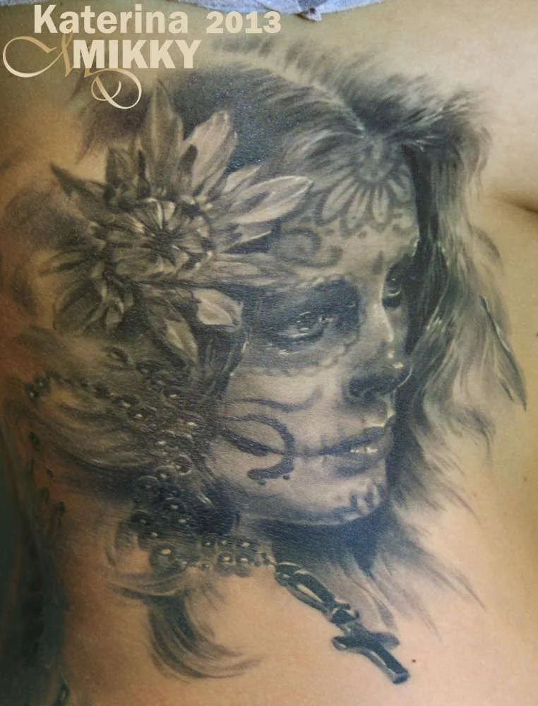 Тату череп Чикано Катрины