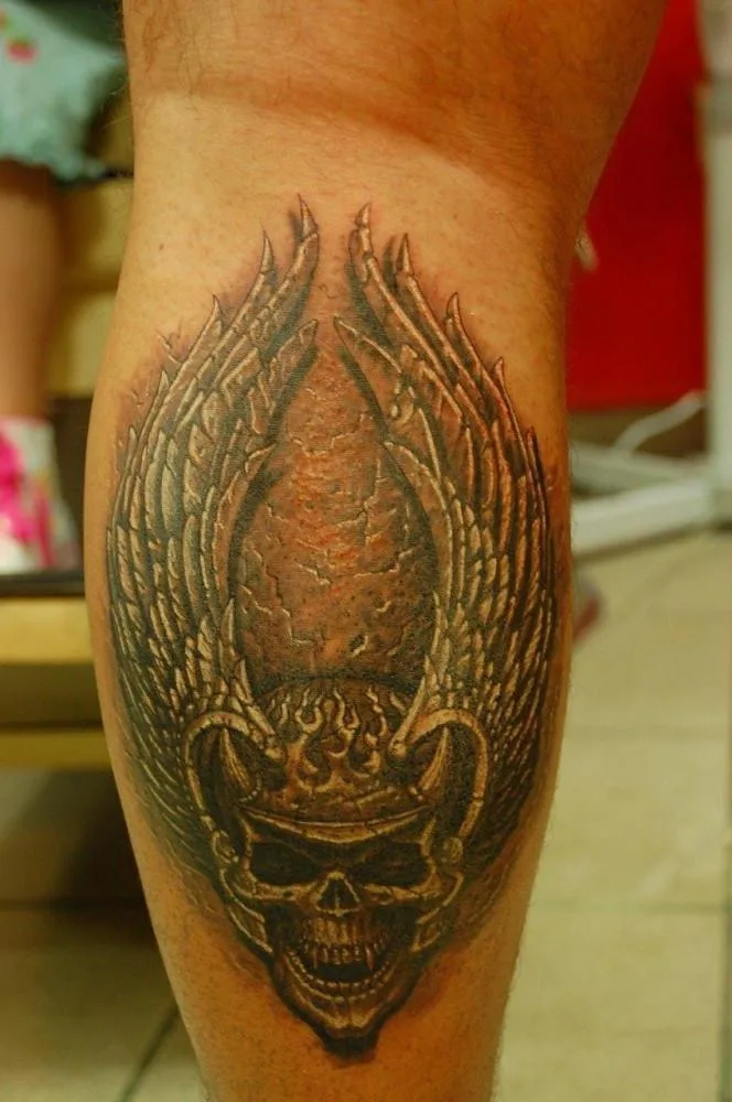 Тату череп 3d Skull на ноге