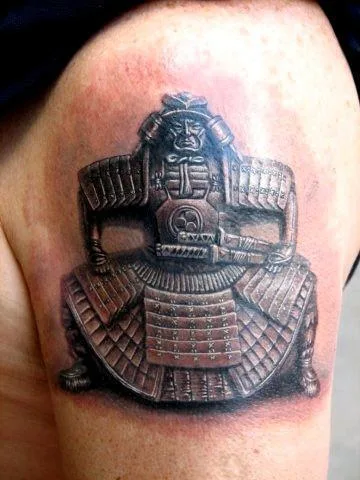 Тату самурай объёмный на плече