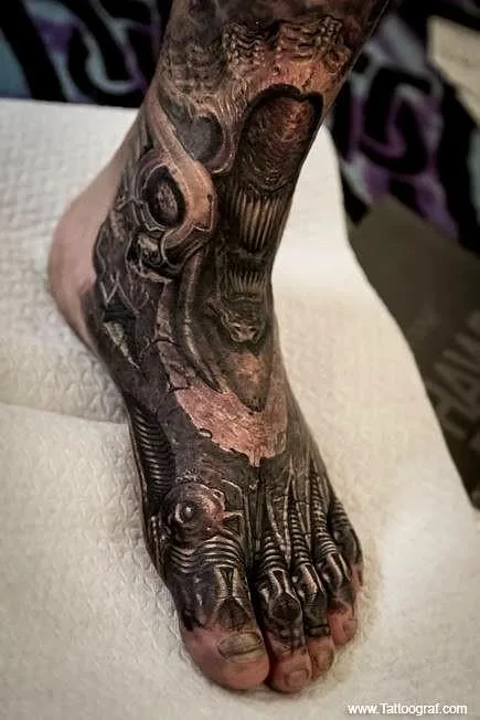 3D тату биомеханика - киберпанк на ноге