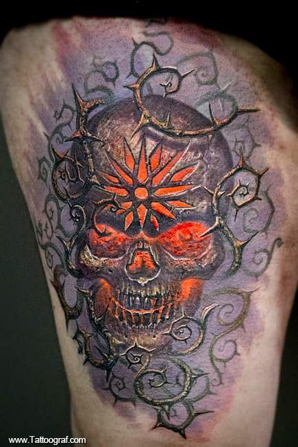 Тату череп 3d Skull на ноге