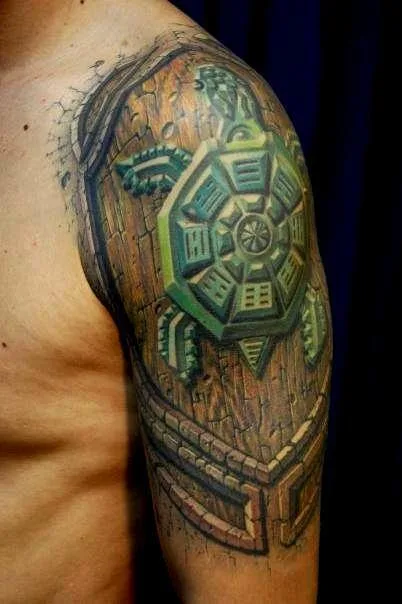 Тату черепаха Тибет багуа в камне на плече