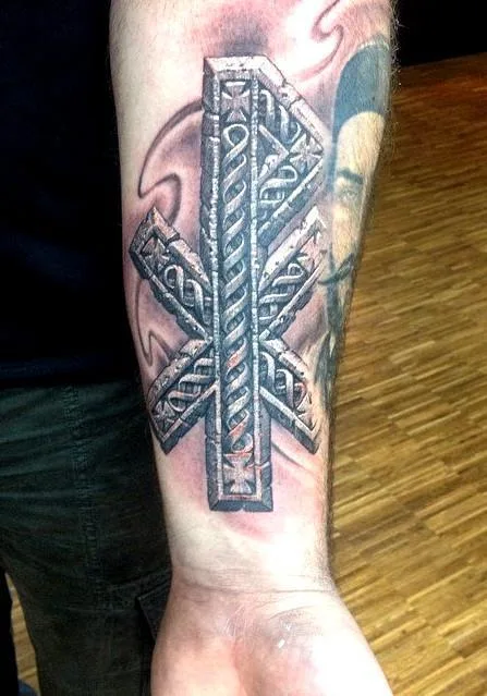 Тату крест Константина в камне на руке