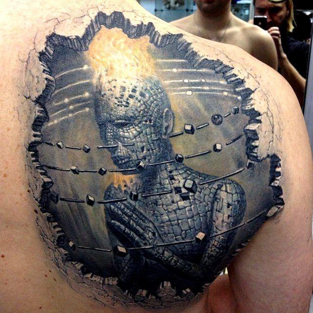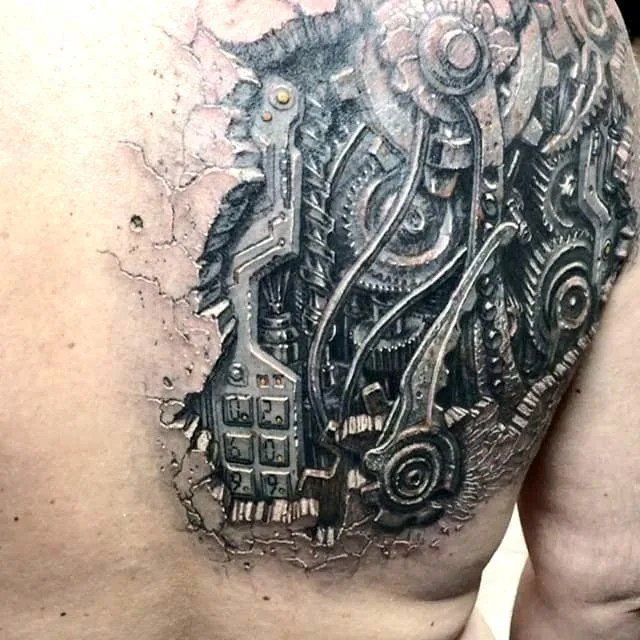 Тату биомеханика - киберпанк спина лопатка