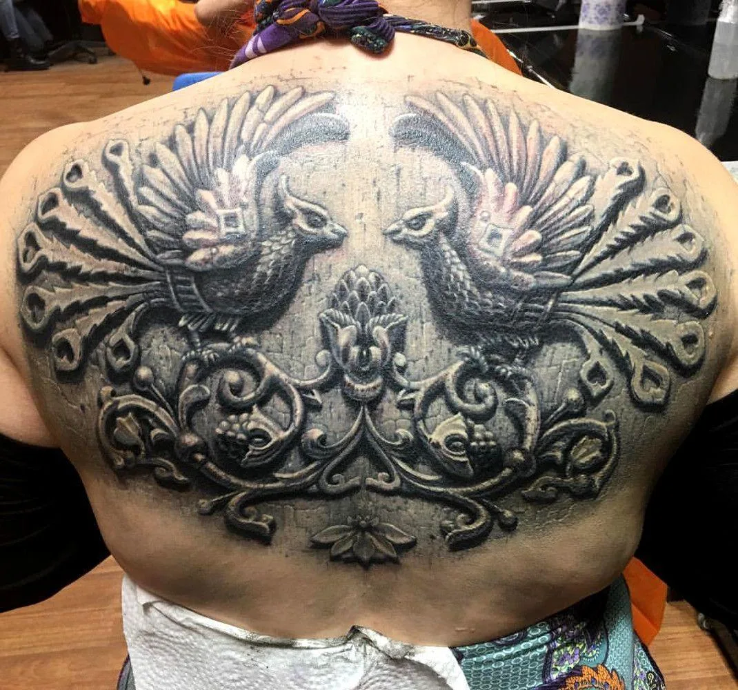 Тату Жар-Птица камень на спине