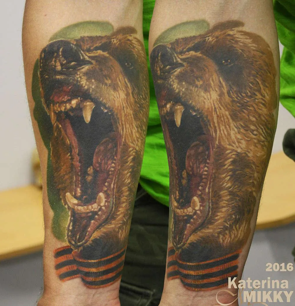 Тату медведь с георгиевской лентой