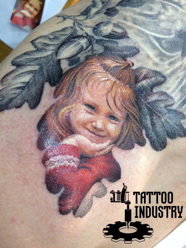 Тату портрет детский в ветке дуба дотворк