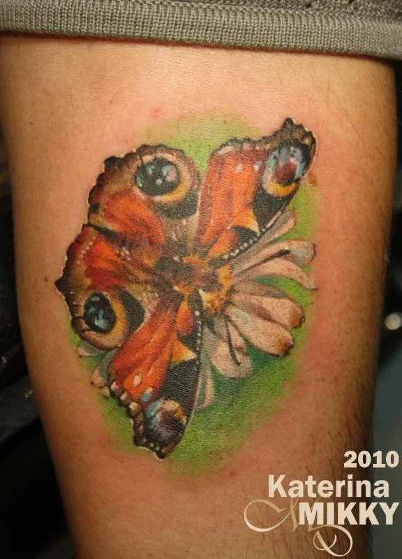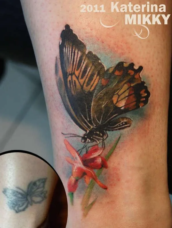 Тату бабочка на цветке Cover up