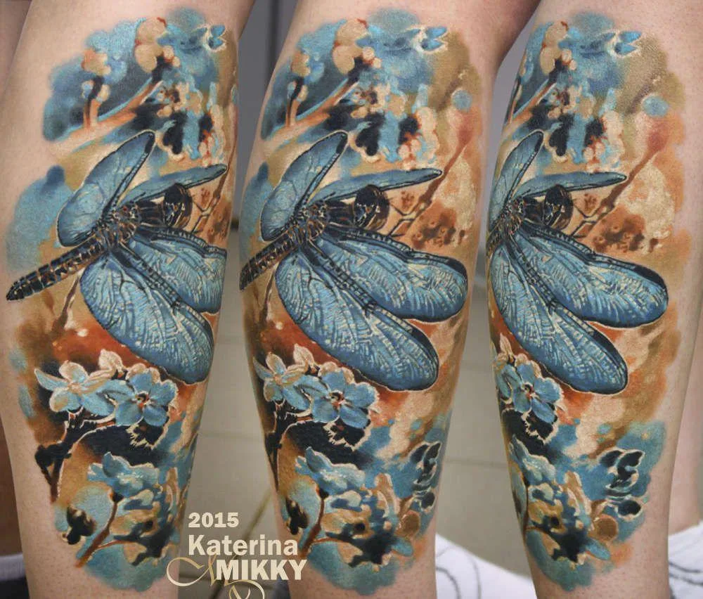 Тату стрекоза на сакуре