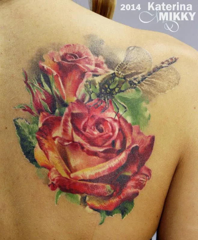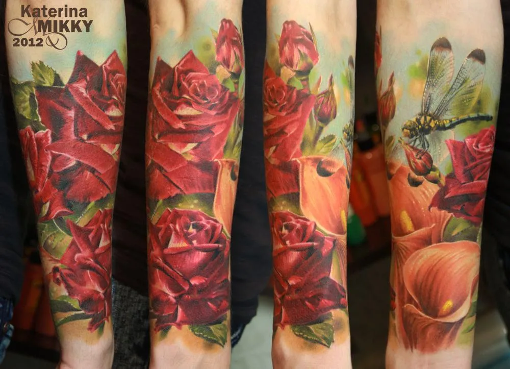 Тату розы, каллы и стрекоза