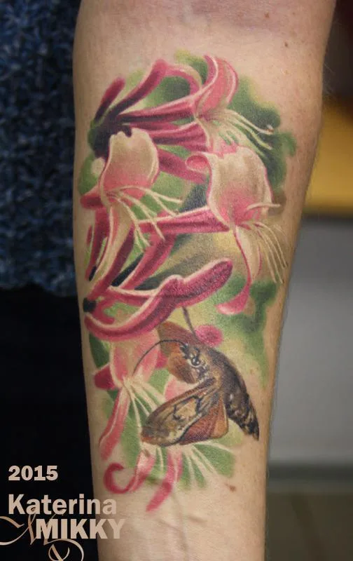 Тату лилия африканская с мотыльком