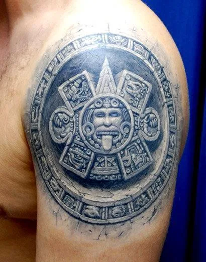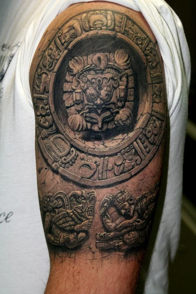 Тату майя зодиак маска из камня на плече