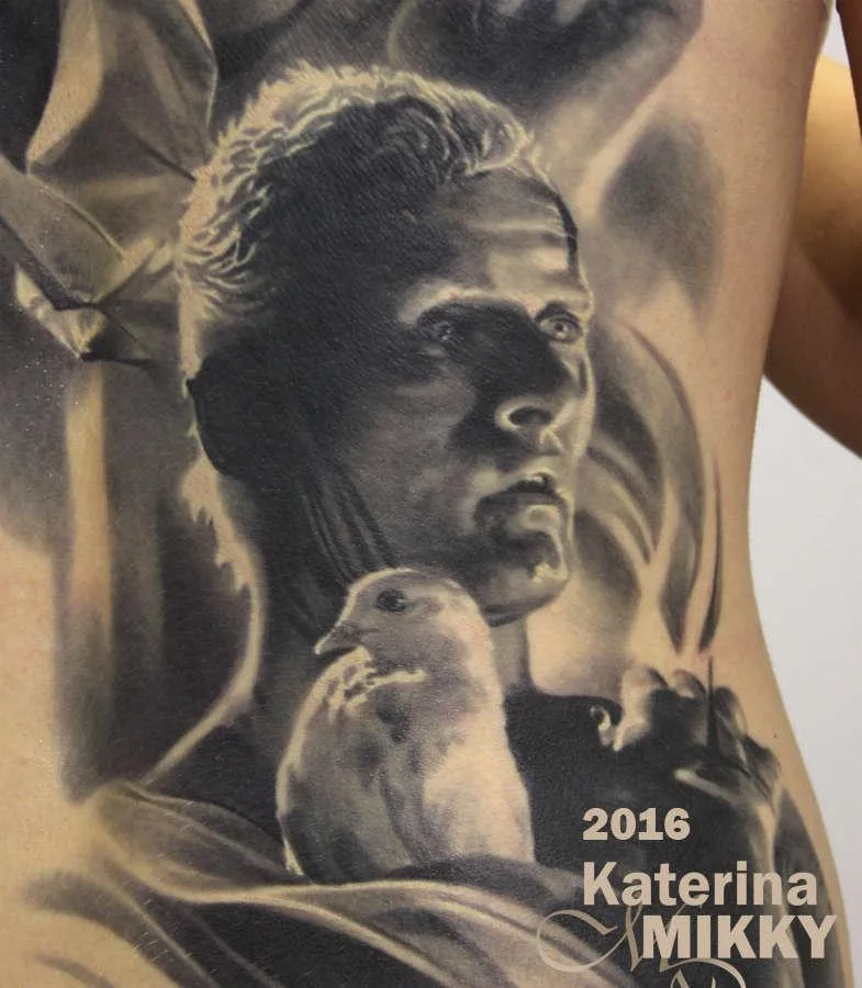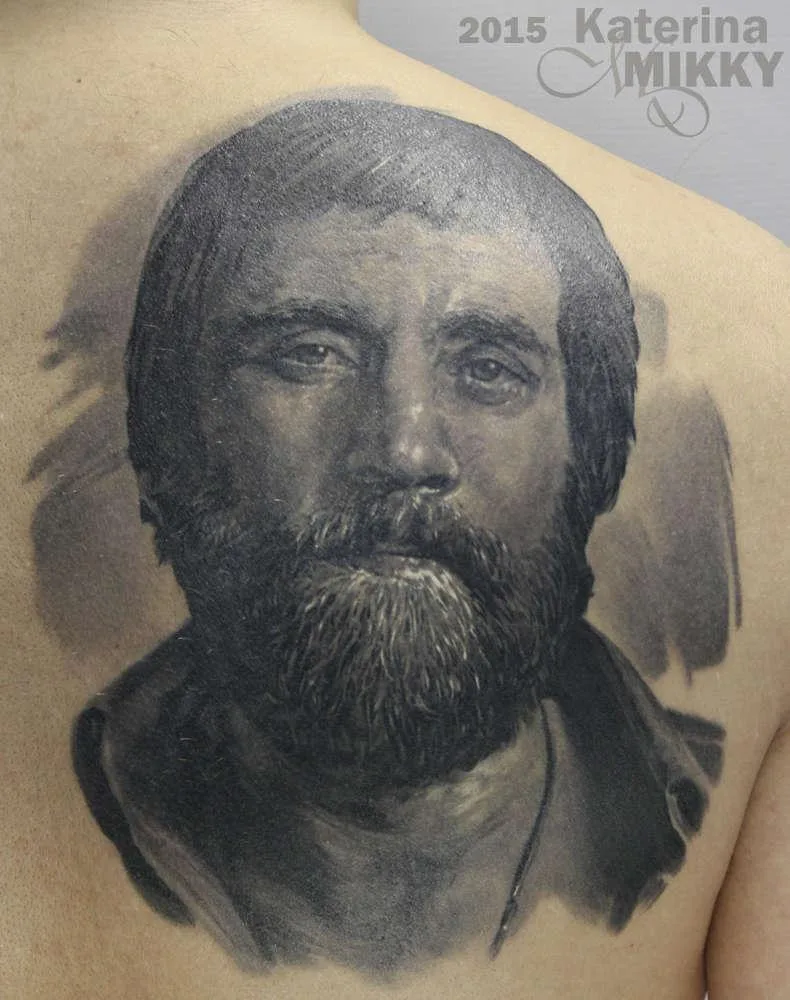 Тату портрет девушки на груди мужчины