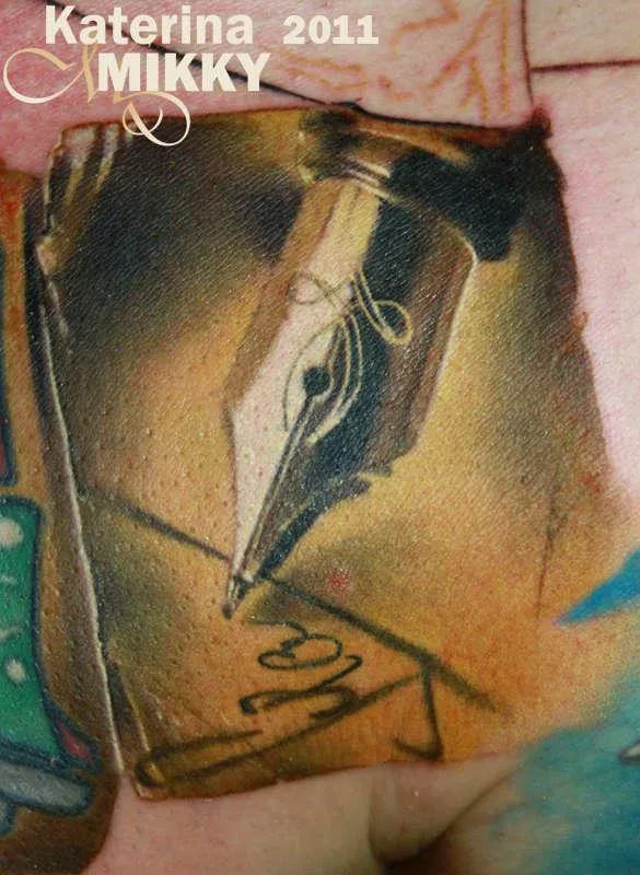 Тату перо старинной ручки