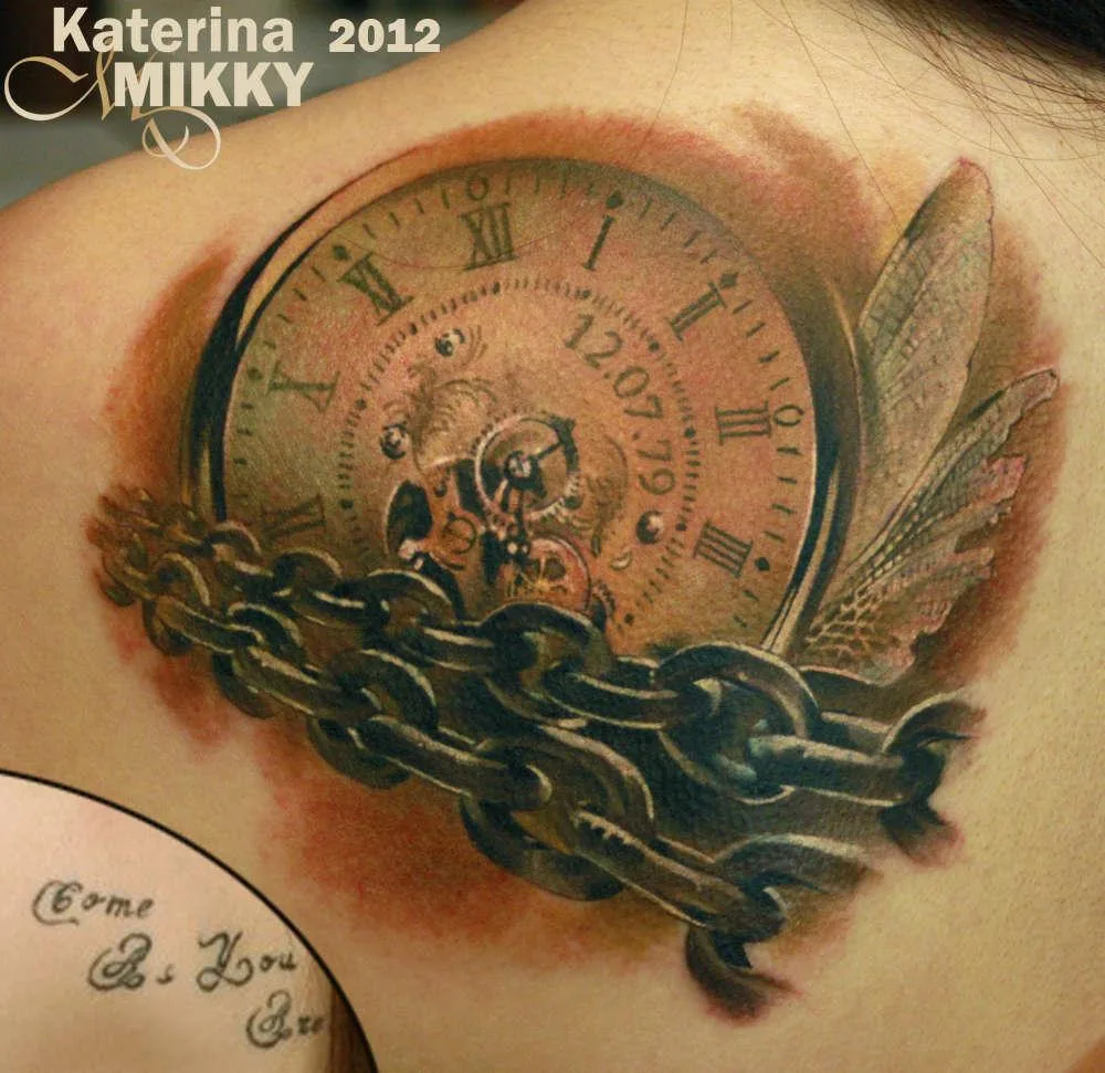 Тату часы стимпанк в цепях