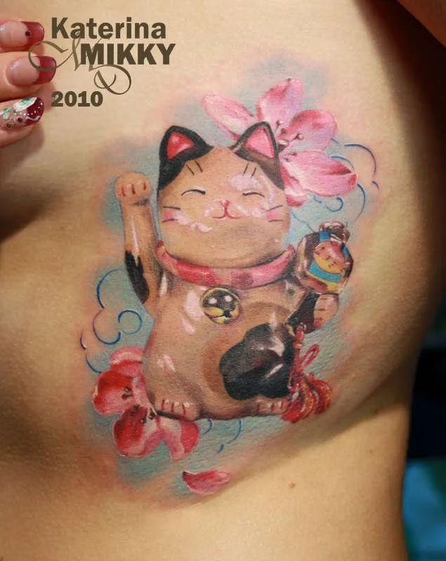 Татуировка на счастье мультяшный котик