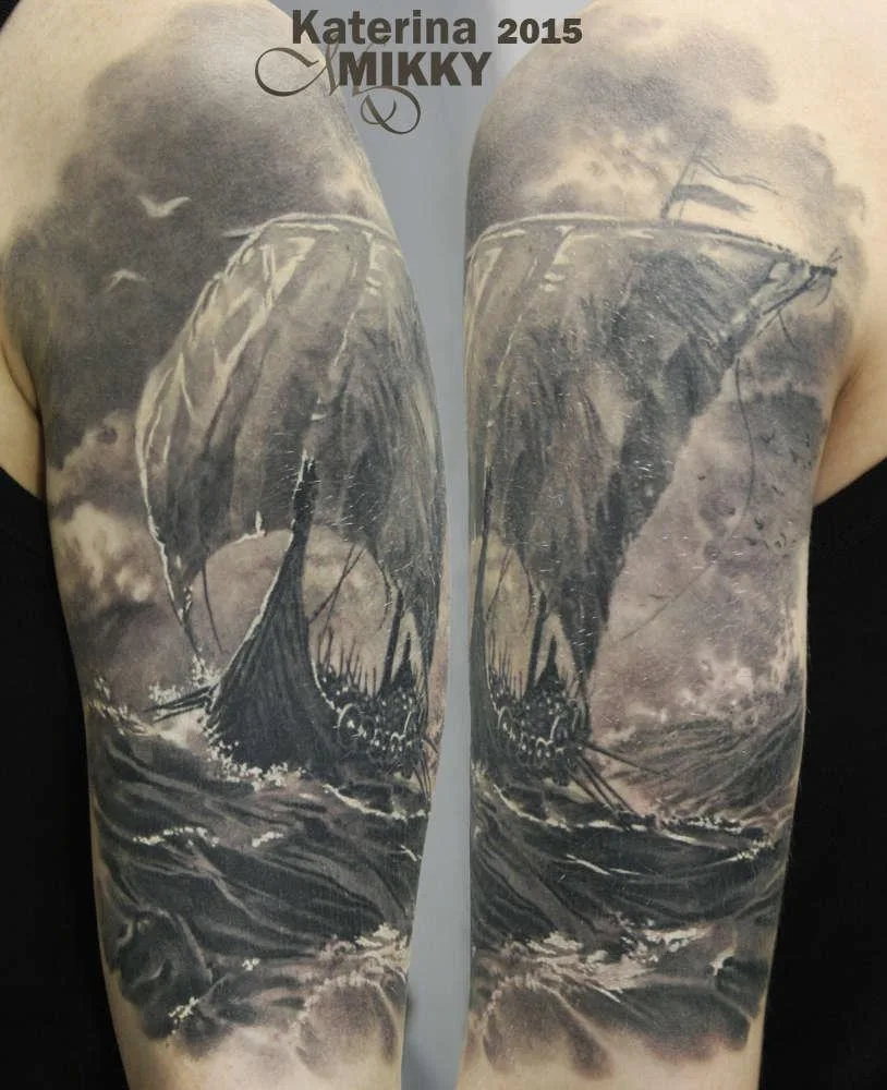 Татуировка старинного корабля в океане