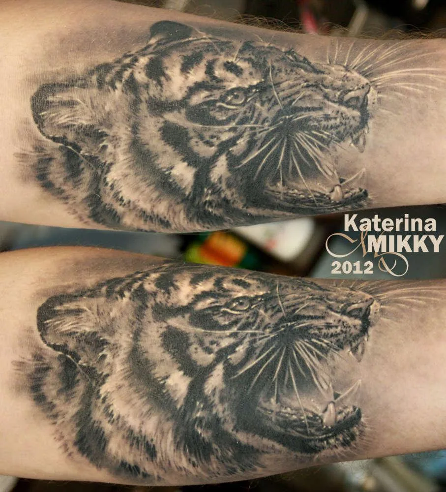 Тату тигр на предплечье