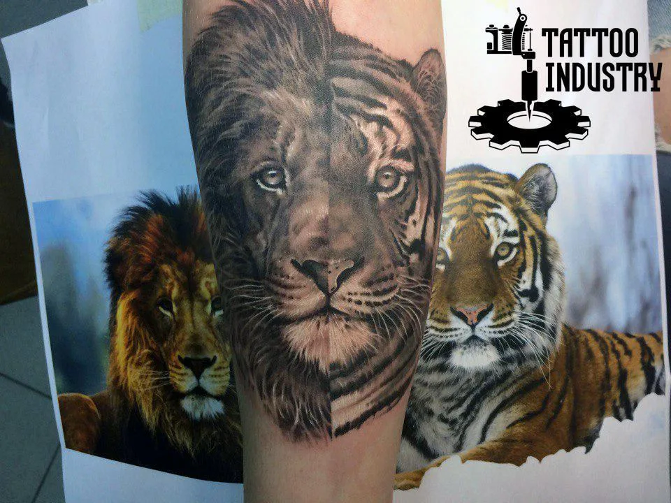 Тату лев и тату тигр по фото на голени