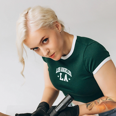 Дарья к татуировкам пришла довольно спонтанно, имея за плечами художественное образование. «Со стилем ещё определяюсь но тянет к цветному реализму. Часто занимаюсь перекрытием (cover up). Для меня важно не испортит челов