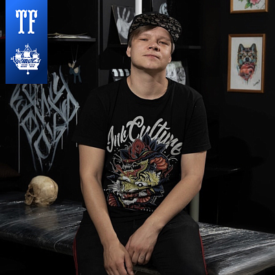 Татуировщик из Сибири. Любит преимущественно стиль Чикано, хулиганские и околомультяшные темы.