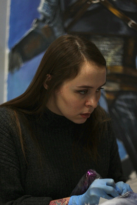 Всем привет! Меня зовут М.Е. Я состою в Proteam самой лучшей краски - Gallery Tattoo Ink. Работаю в разных стилях, предпочитаю цвет) Люблю реализовывать необычные идеи и видеть, как радуется клиент проделанной работе=))