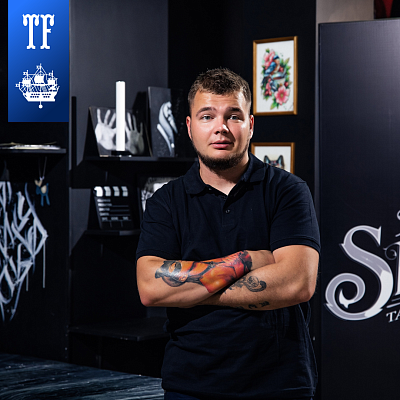 С детства рисую, занимаюсь творчеством. В татуировку пришла в 2020, вдохновившись примером подруги, и занимаюсь ей уже пятый год. Работаю в стиле графика. Это мой первый фестиваль, поэтому немного волнуюсь, но очень жду