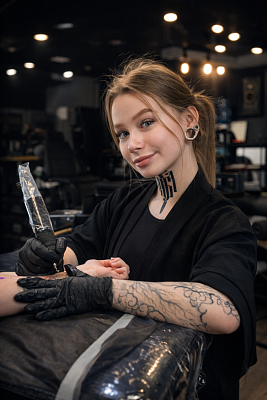 Мечтала стать тату мастером с 13 лет, а обучаться и работать в тату начала с 2020 года. Есть высшее художественное образование. Предпочитаю работать в стиле графика, випшейдинг. Люблю свою работу, люблю работать с людьми