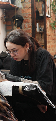 «Искренне люблю татуировку и уже как 5 лет развиваюсь в неотрадиционном стиле. Родилась и выросла в Санкт-Петербурге, но душа жаждала приключений, поэтому переехала жить в Европу. Сейчас живу и работаю в Кракове, Польша.
